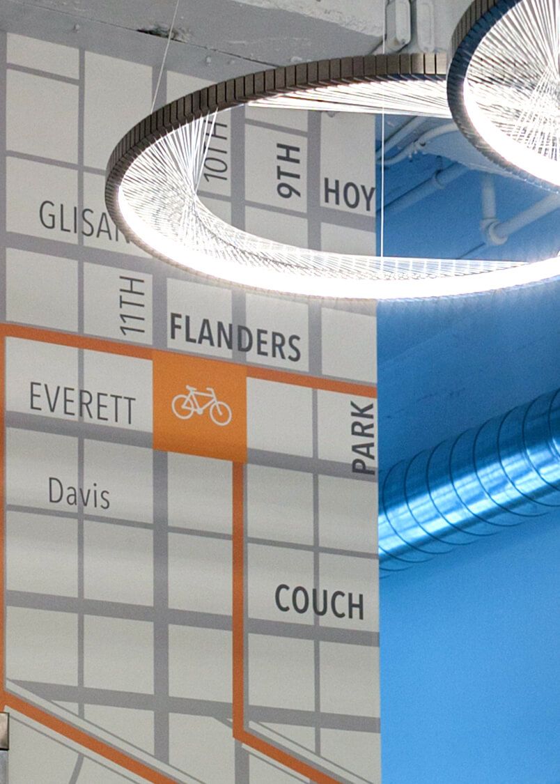 The 1010 Flanders project, a core and shell renovation in Portland’s Pearl District, transformed a historic building into a mixed-use hub with a new set of tenant amenities. Formerly called the Ballou & Wright Company Building, the property was constructed in 1921 as a warehouse and manufacturing facility for bicycle, motorcycle, and automobile parts. It’s listed on the US National Register of Historic Places, and designated as a Historic Landmark by the Portland Historic Landmarks Commission, underlining and codifying the importance of its preservation.