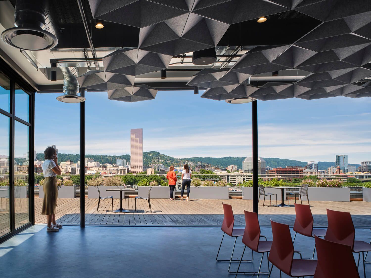 This renovation creates a compelling identity for Autodesk’s Portland office, interpreting the company’s brand through its local context. Portland cultural motifs are woven throughout the workplace, paying homage to the city’s artisans, urban landmarks, geography, and history.