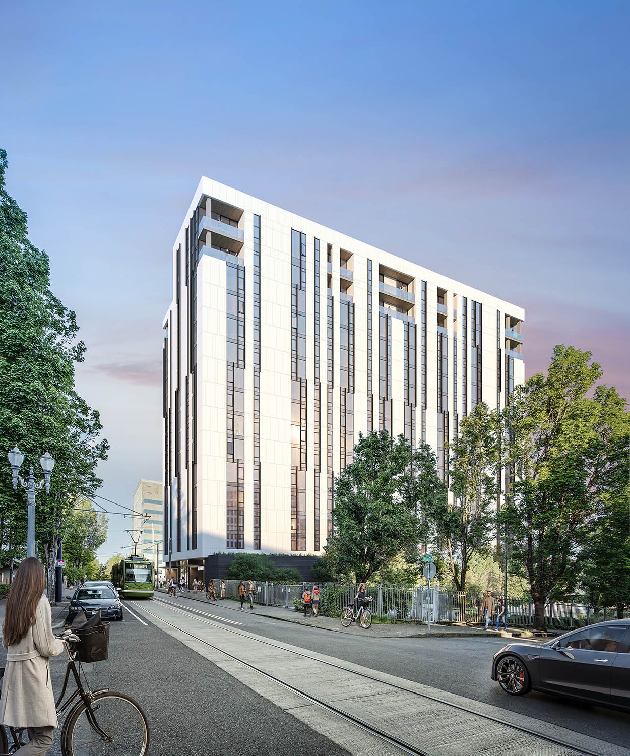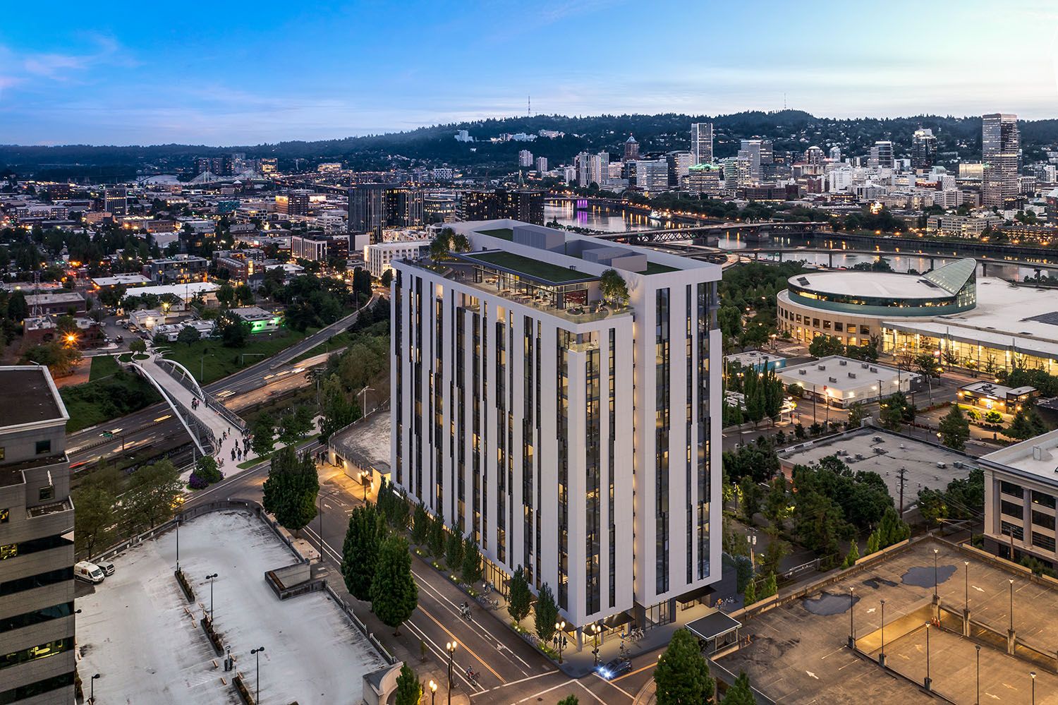 The Skyview will be a 15-story high-rise apartment development situated on Portland’s bike-friendly Green Loop, a half block from the Earl Blumenauer pedestrian bridge. The multifaceted 240-unit building features inclusionary housing, market-rate unit apartments, and luxury penthouse living spaces. Amenities include co-working and lounge space, a pool and spa, a fitness facility, and a multi-purpose sport court that create a vibrant and street presence.