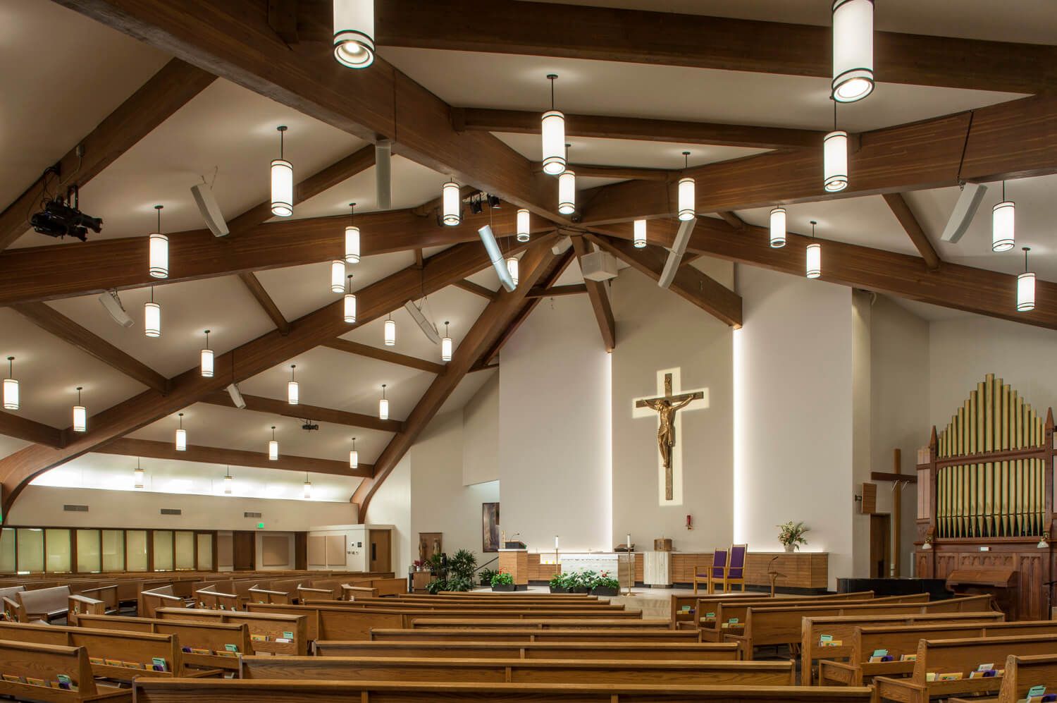 Previously, Mackenzie designed upgrades, including new lighting, casework, flooring, and altar furniture; ADA accessibility improvements; and tabernacle design within the Parish's existing sanctuary. The firm also designed a remodel to transform the existing, traditional 1,600 SF library space into a technology-rich media center.