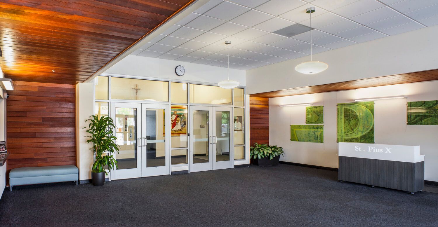 The most notable upgrade is ongoing work on a two-story, 14,600 SF expansion to the St. Pius X K-8 Catholic School. The project team worked collaboratively with the client to create a modern classroom environment intended to serve the school for the next 50 years with a fixed budget. The program includes three kindergarten classrooms, offices, a revised entry, a science room, a music room, and renovation of existing bathroom facilities.